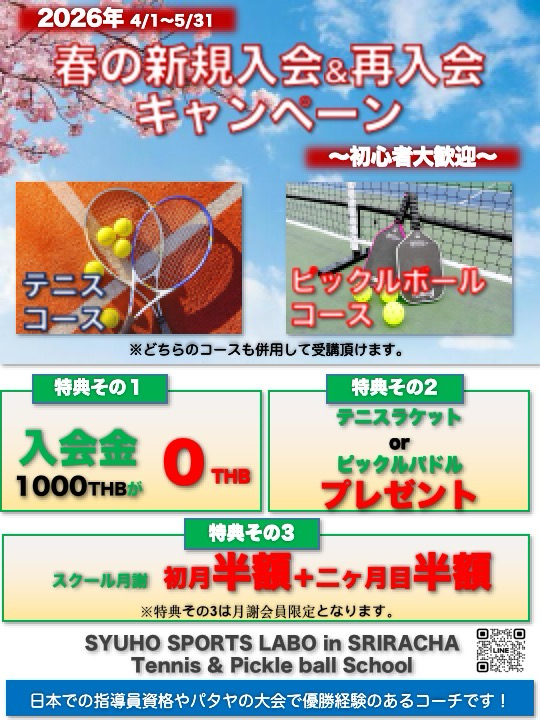 シラチャ校 初のピックルボールオープンプレイ タイ シラチャ校の衣笠です。 既に上海校ではピックルボールのオープンプレイが開催されていますがシラチャ校では初めての開催となりました🇹🇭 普段は別々の時間帯でレッスンを受講 […]
