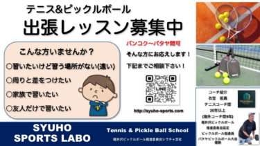 出張レッスンご相談下さい(テニス&ピックルボール) タイ シラチャ校は出張レッスンを開始します。 テニス&ピックルボールコーチ二名在籍 ご希望の方は、ご連絡下さい。 出張レッスン対象エリア:バンコク〜パタヤ ※その他エリアは要相談。 […]